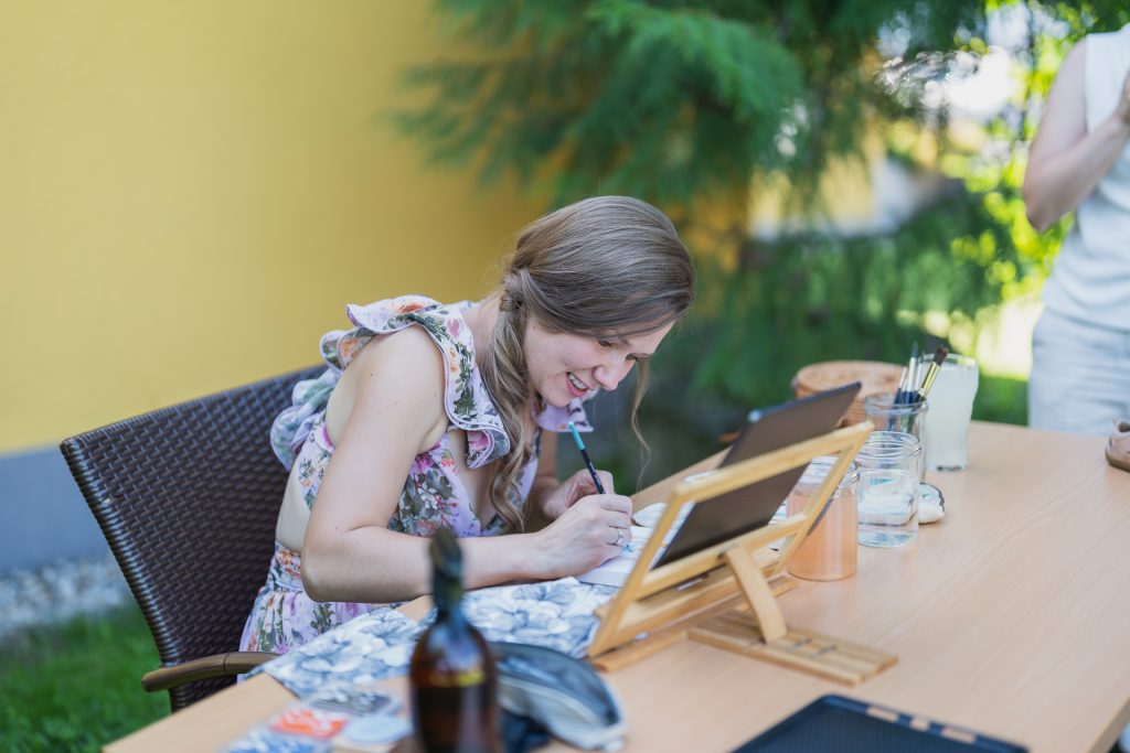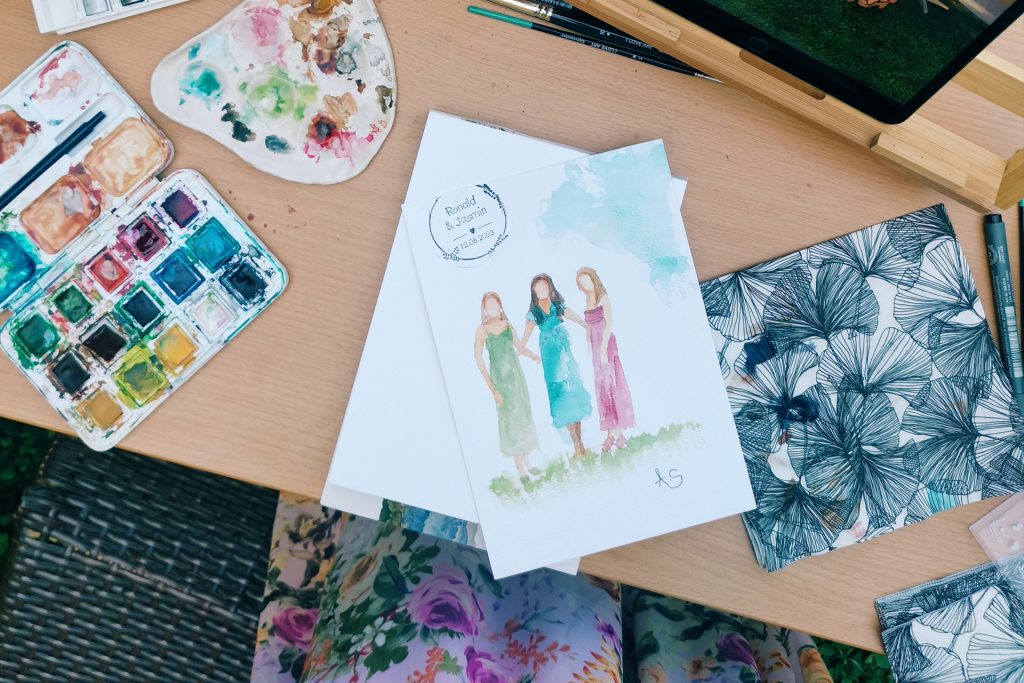 Deine Gäste erhalten etwas, was weit über klassische Gastgeschenke hinausgeht: ein individuell gemaltes Porträt, das sie mit nach Hause nehmen können.