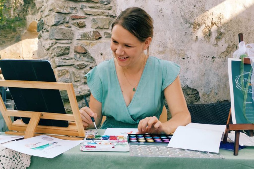 Stell dir vor: Während euer Fest in vollem Gange ist, entsteht etwas ganz Besonderes – handgemalte Aquarellporträts eurer Gäste. Als Live-Künstlerin bin ich mitten im Geschehen und fertige individuelle Porträts direkt vor Ort an – jedes ein kleines Kunstwerk und ein ganz persönliches Erinnerungsstück.
